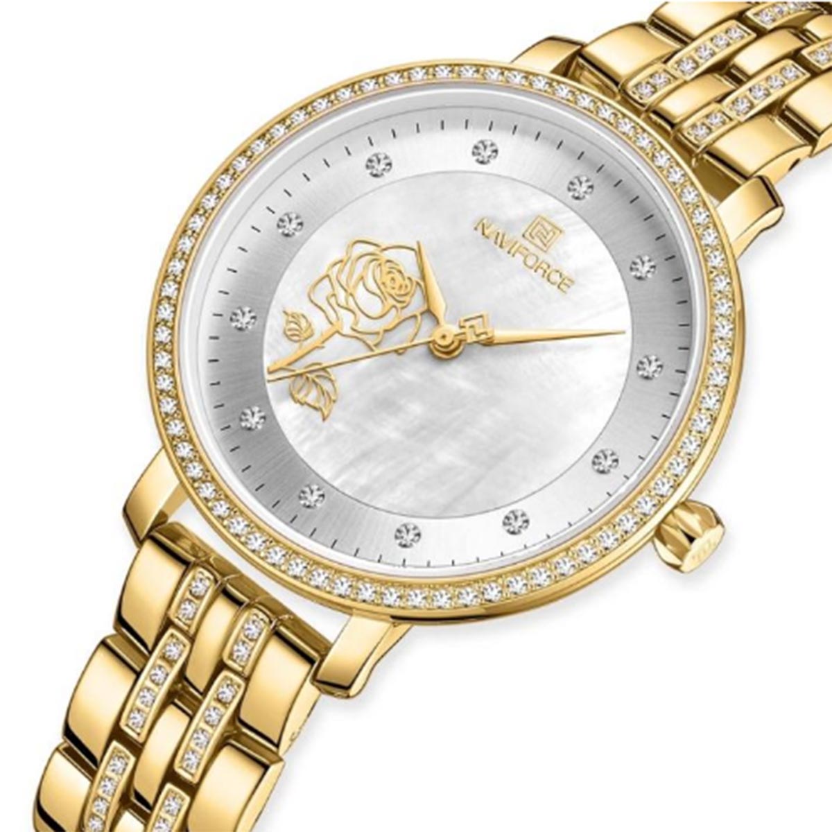 ساعت مچی زنانه ناوی فورس مدل NF5017 G/W یک ساعت بسیار شیک و کلاسیک از برند معتبر ناوی فورس است که طرفداران بسیار زیادی در دنیا دارد.